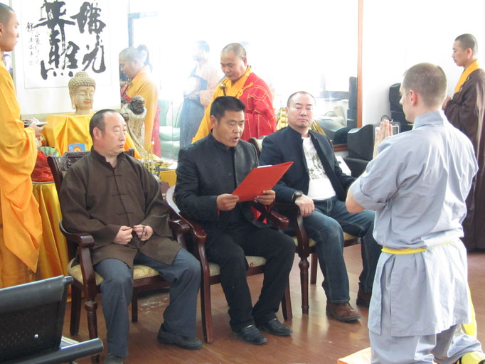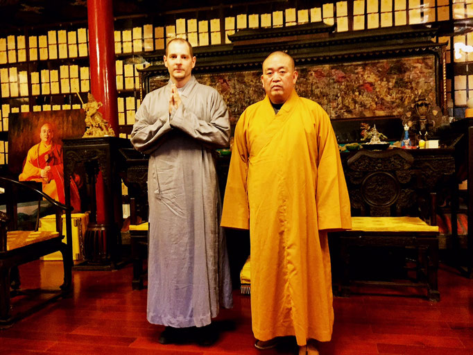 Ein weiteres Highlight folgte 2016! Roger Müller wurde durch den ehrwürdigen Abt des Shaolin Tempels, Shi Yong Xin (释永信), zu seinem offiziellen Schüler ernannt und erhielt den buddhistischen Namen "Shi Yan Long" (释延龙).